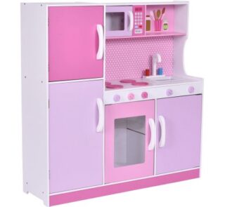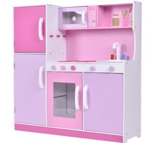 Wooden Kitchen Cooking Toy Play Set For Toddler Kids Wood Pretend Playset Gift Pink New